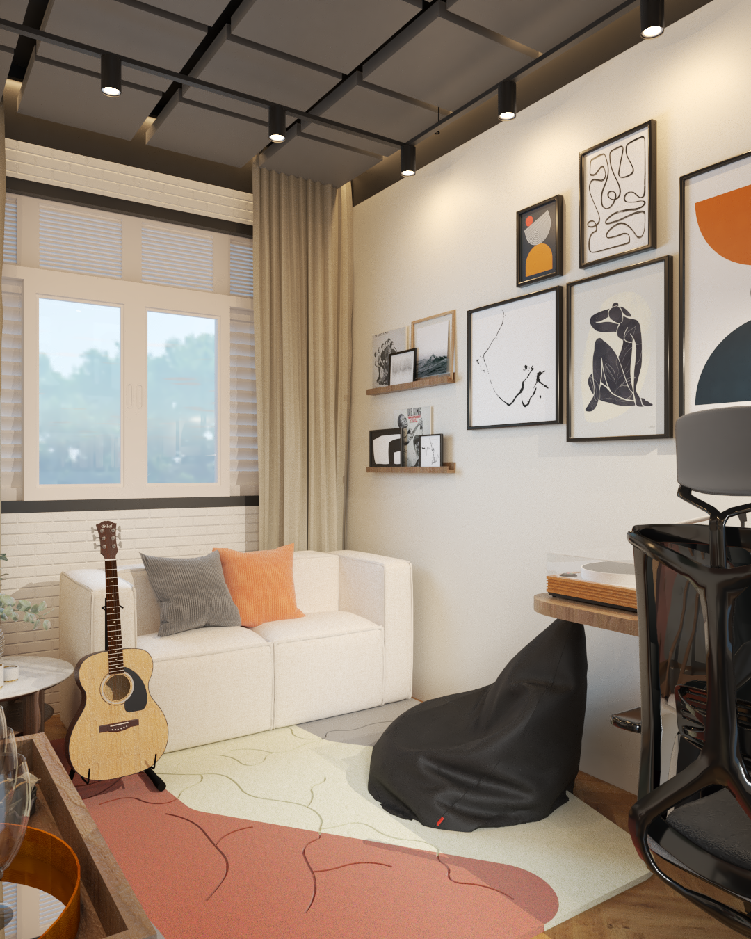 no estúdio taco, a música e o trabalho se encontram em perfeita harmonia. restauramos o piso original para manter a história viva e criamos um ambiente que combina conforto, funcionalidade e propósito. a iluminação estratégica, o teto acústico e os painéis projetados garantem qualidade para gravações, além de se transformar no local ideal para estudar, trabalhar e relaxar. cada detalhe, dos móveis aos itens afetivos, reflete a personalidade do cliente, tornando o ambiente um convite à criatividade.